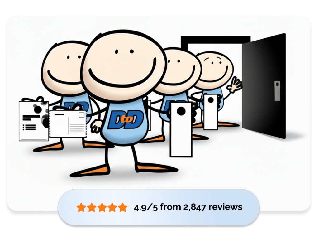 Let’s face it., your customers get bombarded daily with mass mailings, newspaper or magazine ads, TV Ads and computer pop ups… BUT THEY ONLY HAVE 1 FRONT DOOR! And that’s where we come in. Direct-to-Door Marketing is the largest nationwide printing and distribution company in the country! We can place your advertisement or product strategically in front of your potential customers, quickly and cost effectively.
