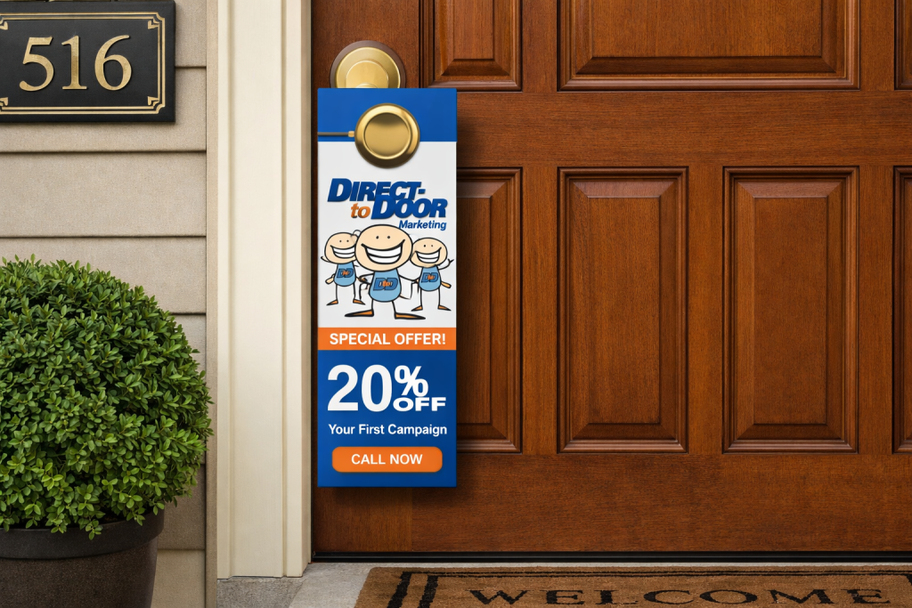 Our specialty lies in residential door-to-door distribution, ensuring your advertisement reaches the front door every time. Each door hanger is delivered individually, guaranteeing maximum visibility for your advertisement.