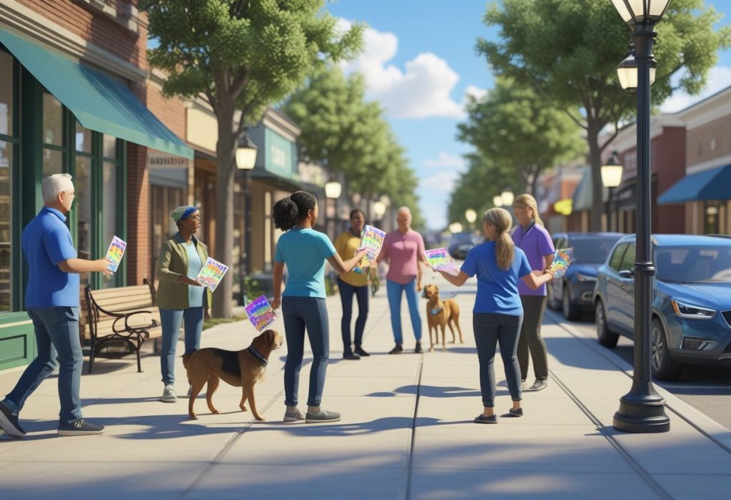 In suburban areas, you might need to cover more ground and focus on neighborhoods, parks, or events. In urban places, you’ll distribute more on busy streets, apartment buildings, or business districts.