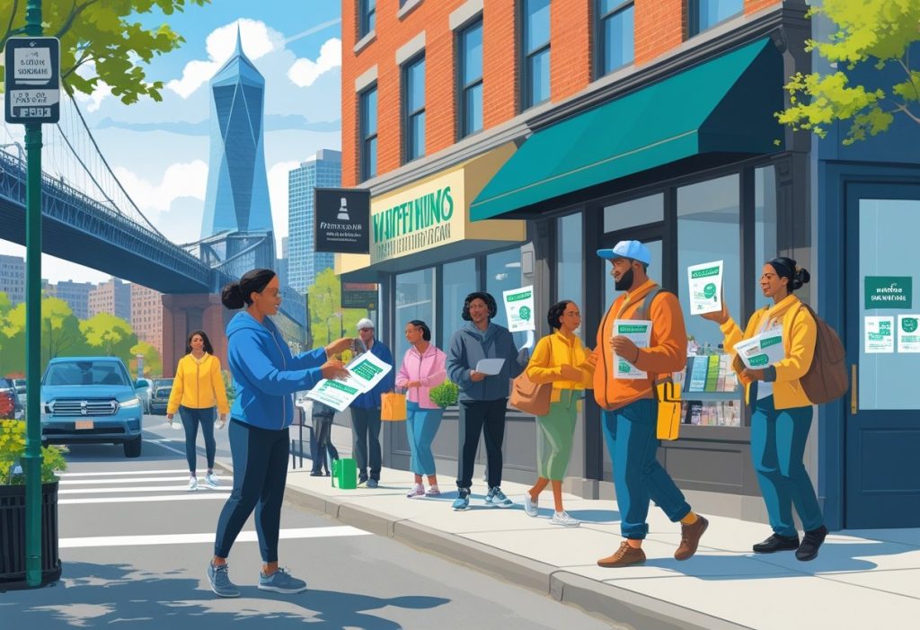 • Hand-to-Hand Distribution: Staff hand out flyers to people on busy streets, at events, or near transit stops.