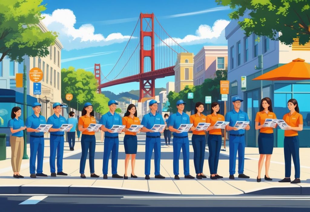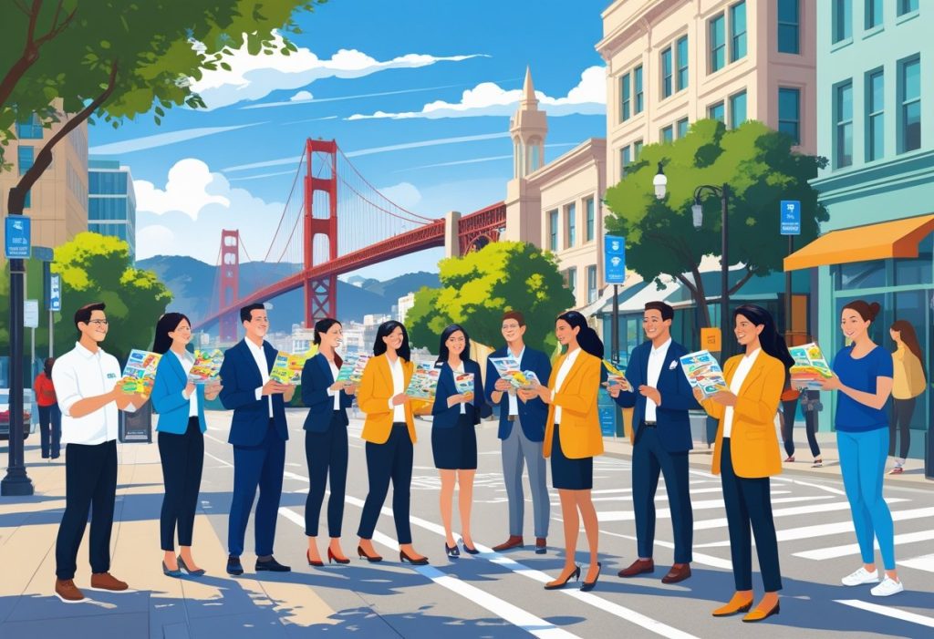 Street teams stand in busy spots like Union Square, Market Street, or near MUNI stations. They hand flyers directly to people walking by, making sure you get face-to-face contact.