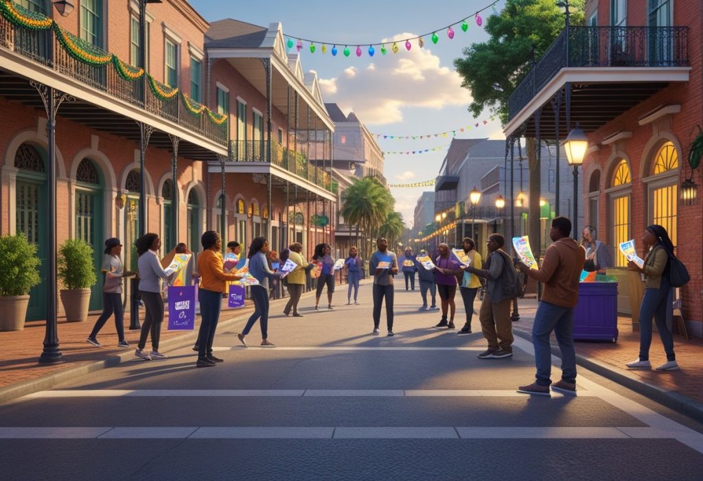 New Orleans throws a ton of events—Mardi Gras, Jazz Fest, markets, you name it. Handing out flyers at these gatherings gets your message in front of folks already in a good mood.